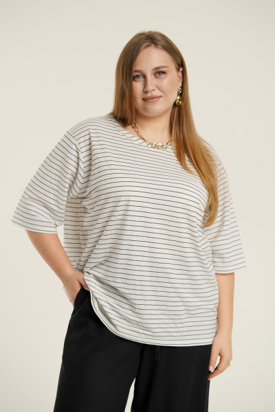 Джемпер свободного покроя из трикотажного полотна. Вырез горловины- неглубокий, округлой формы с отрезной планкой. Рукава- со спущенной линией плеча.